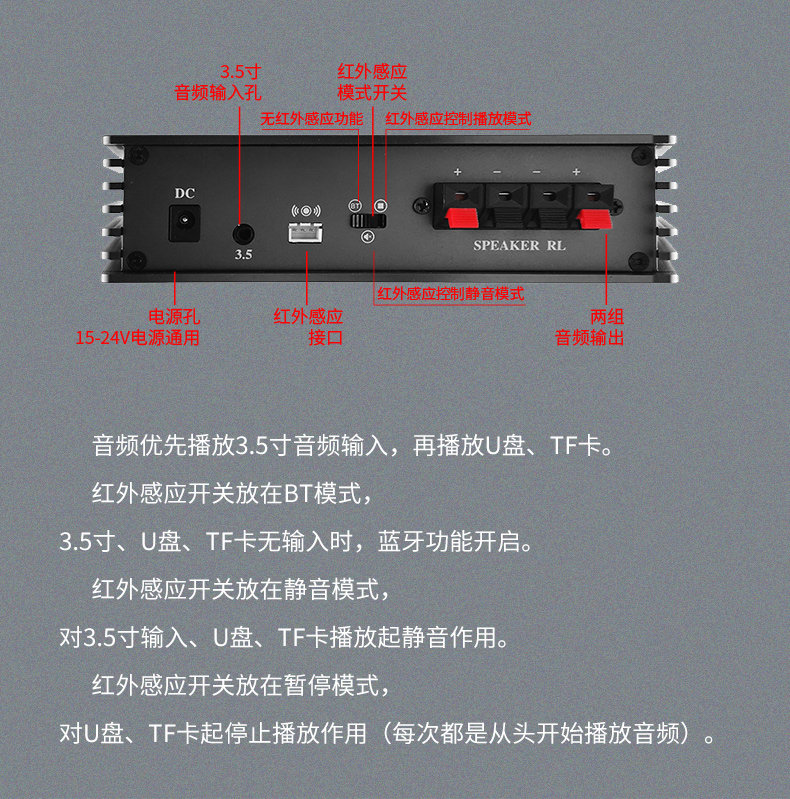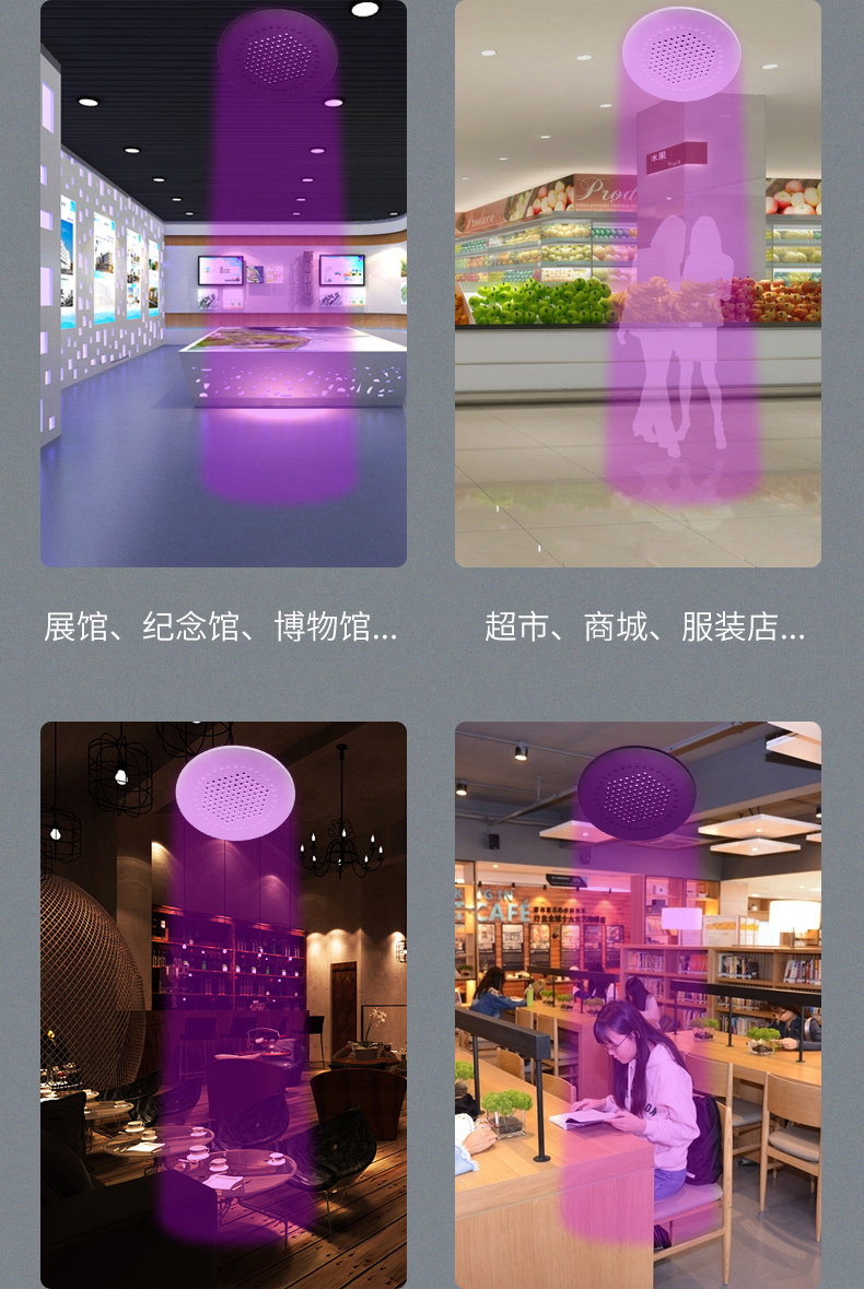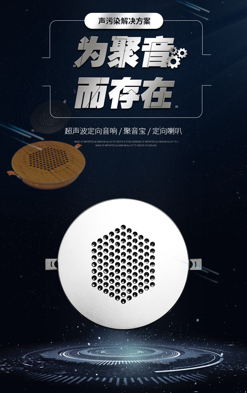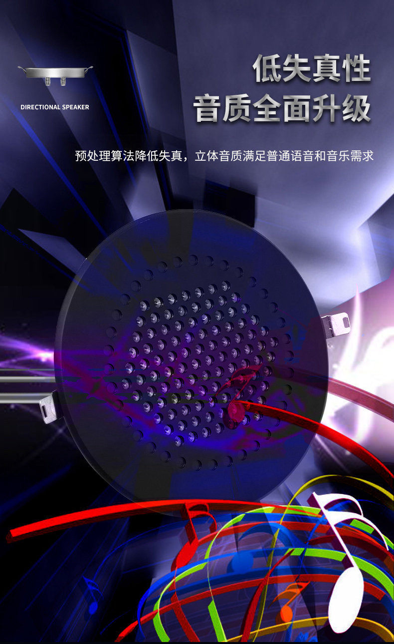 型号:G-18 尺寸:Ф200*30mm 开孔尺寸:180-190mm 外壳:全铝合金外壳或木质外壳 颜色:黑色/银色/木原色 指向性角度:10-15° 频率范围:400Hz-10kHz 最大功率:25W 声压级:85dB@1kHz/1M 电源输入:15-24V 3A 总谐波失真:0.5% 蓝牙 5.0 输入功能 U 盘播放功能,3.5 音频输入 应用场景:室内展厅、博物馆、科技馆等